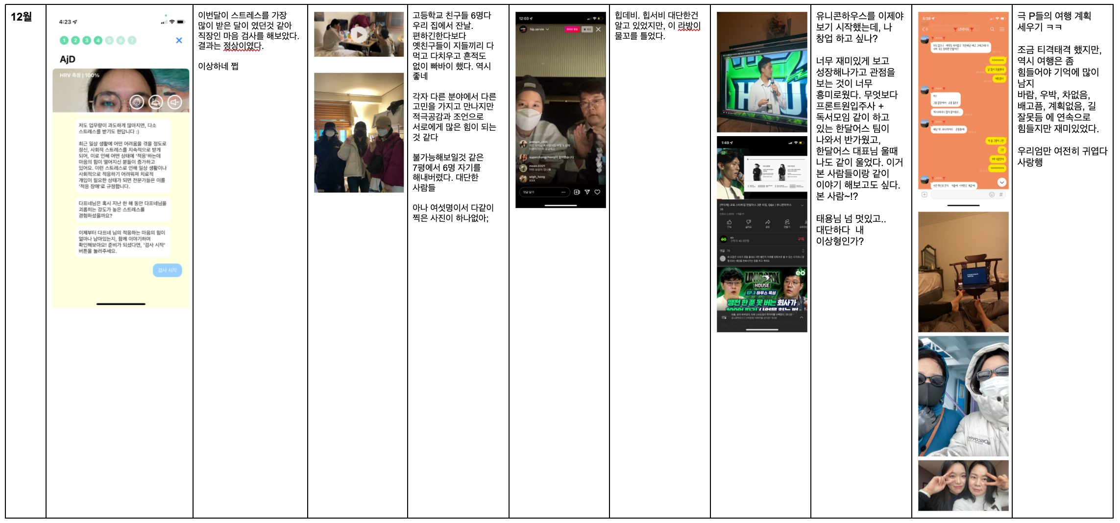 그래서 난 2021년을 갤러리로 돌아보기로 했고, 다른 회고 템플릿에서 공유해본 몇 가지 질문을 통해서 한 해를 돌아보았다.
